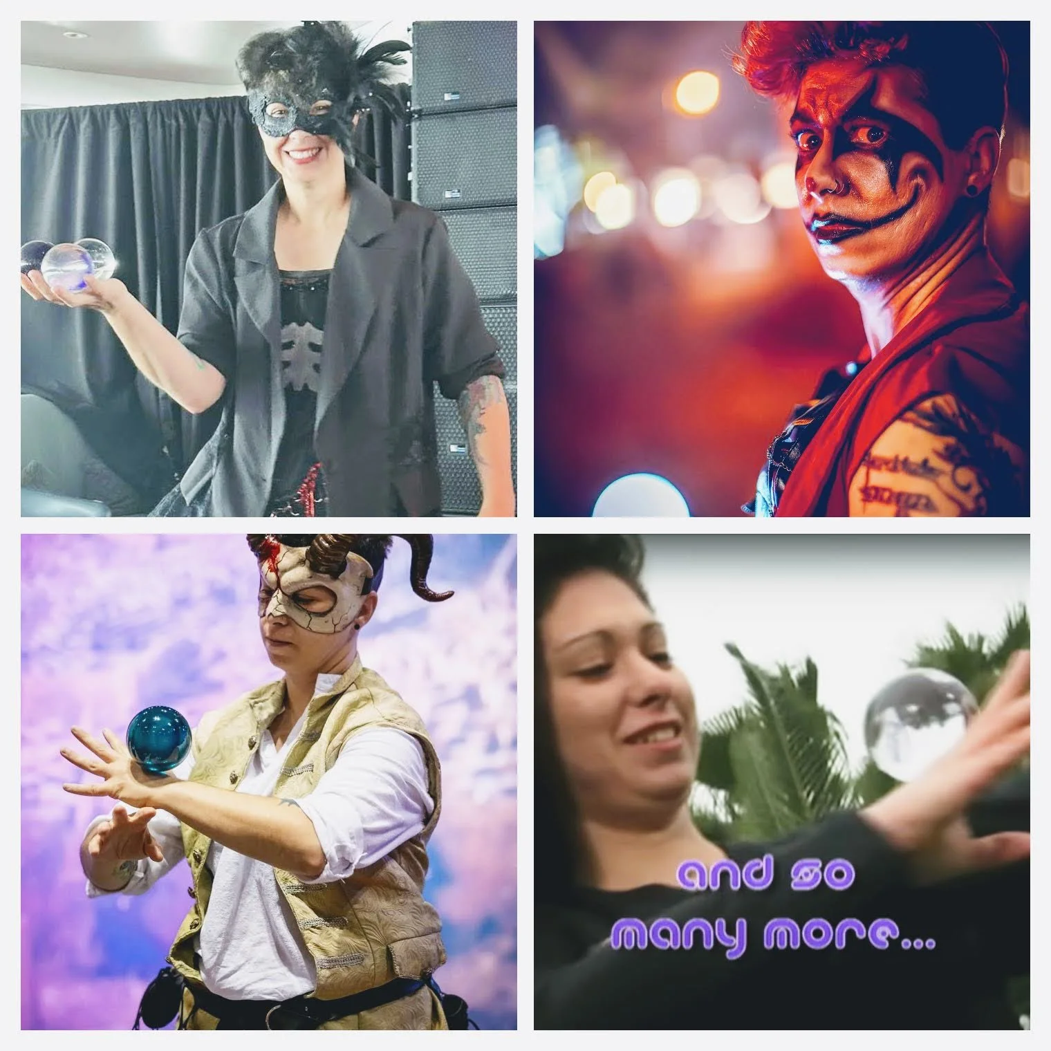 Over that time, they’ve performed in a wide variety of venues, and in 2023, became the world’s first ever Contact Juggling scare actor at SeaWorld’s “Howl O’ Scream”.